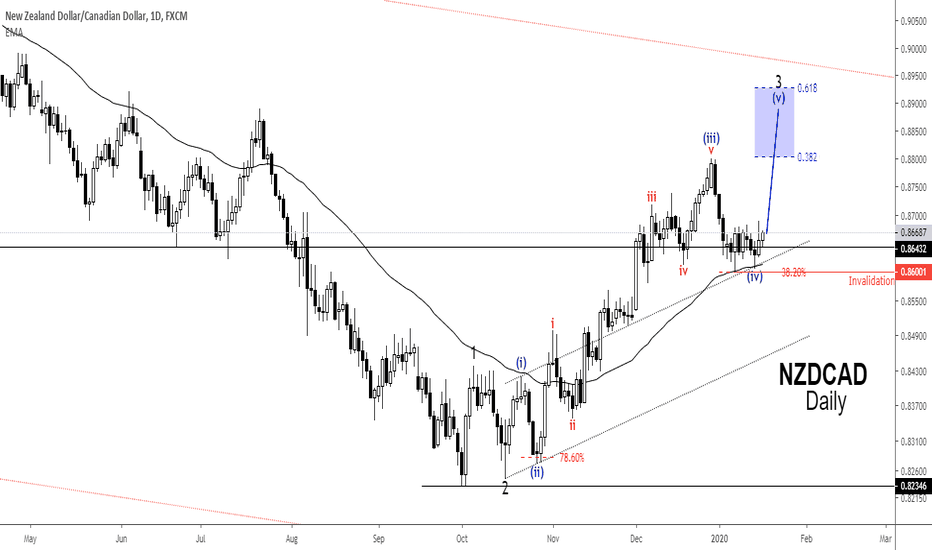 NZDCAD's current chart pattern is unfolding as a bullish Elliot Wave i