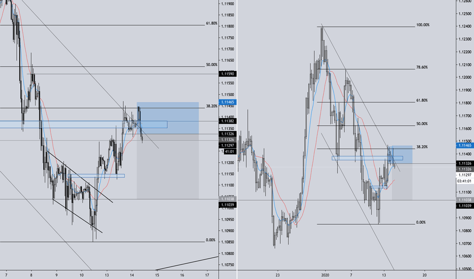 EURUSD showing a 38.2% retracement within a channel and has rejected s