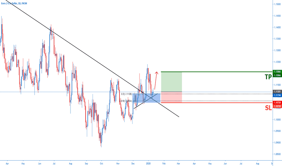 EURUSD WILL SHOOT UP. IT Has broken a trendline and came for a retest