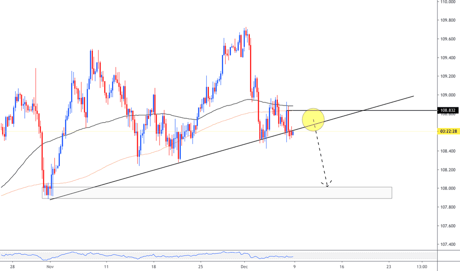 USDJPY broke a daily trend line, possible move to the downside.