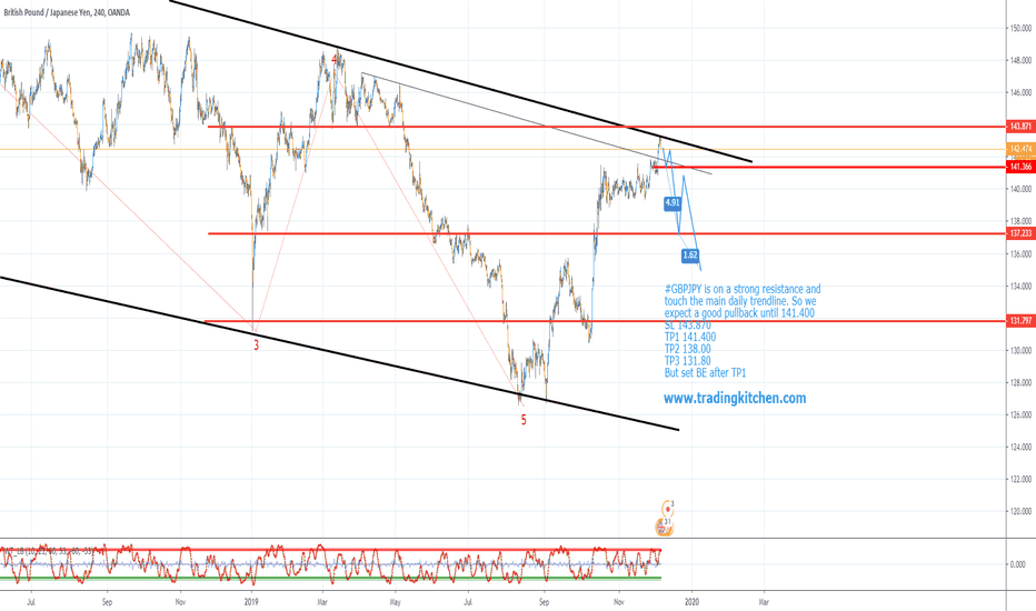 #GBPJPY is on a strong resistance and touch the main daily trendline.