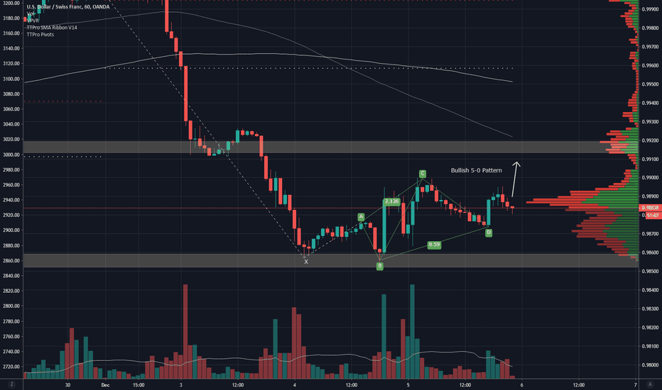 Long day/intraday trade opportunity off this USDCHF Bullish 5-0 Patter