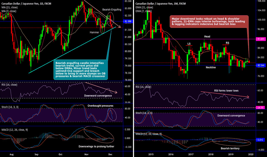 CADJPY minor trend has been spiking through uptrend line (refer daily