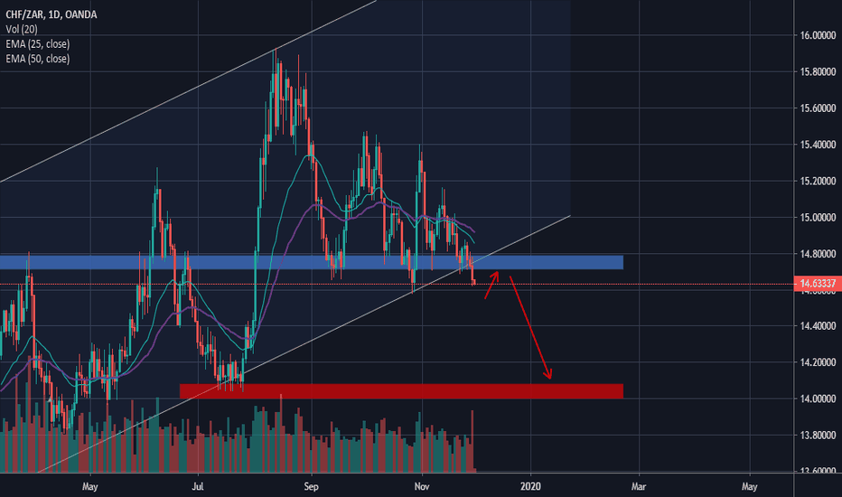 CHF/ZAR has broken down outside of an ascending channel.