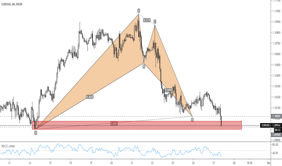 A bullish bat pattern within buy zone in one hour chart. I would like