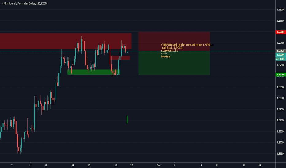 GBPAUD sell at the current price 1.9001, sell limit 1.9050, stoploss 1