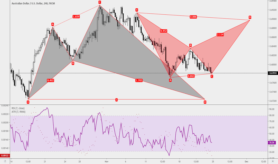 There is a setup on the bullish shark pattern(grey) as well as a beari