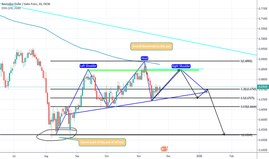 Potential Head and Shoulders pattern on the Daily chart. Overall downt