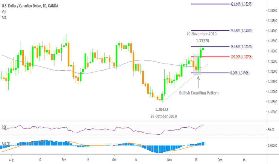 The USDCAD currency pair on the Daily Chart has been in an uptrend sin