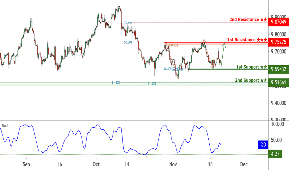 USDSEK approaching support at 9.59432 where it could potentially ris