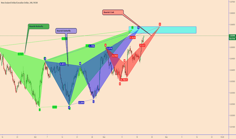 NZDCAD is near completion of a bunch of Bearish Harmonic Patterns. Wat
