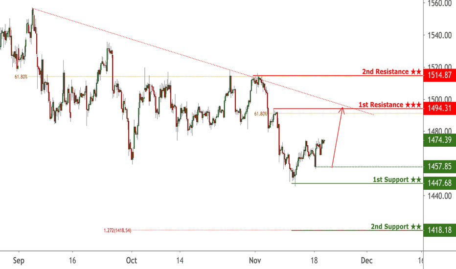 XAUUSD bounced off 1457.85 where it could potentially rise further to