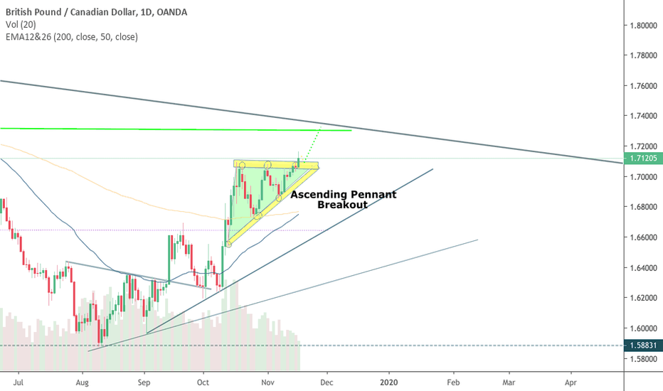 GBPCAD Broke Out of Ascending Pennant Showing Continuation of The Up T
